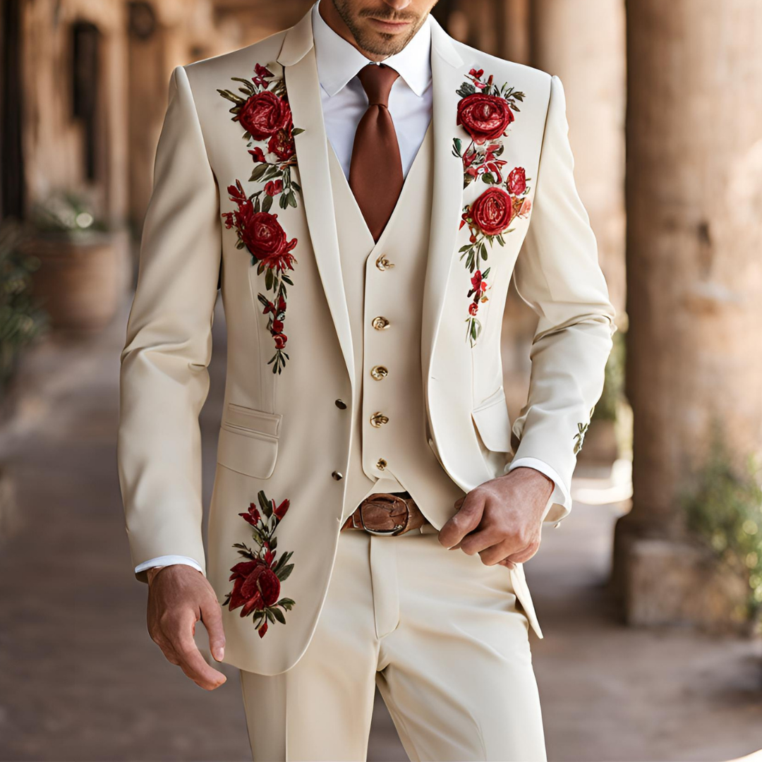 Men 3pc Ivory Embroidery Suit (NS-535)
